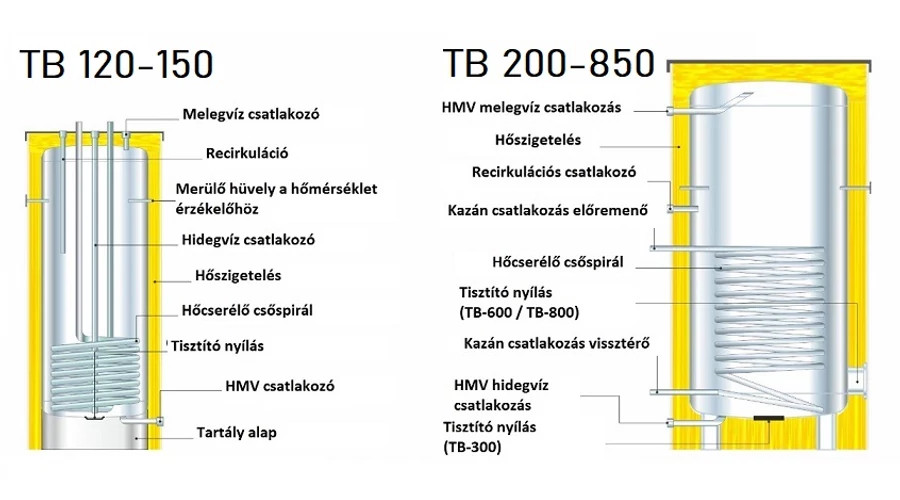 A tartályba bevezetett nagy hőátadó felülettel bíró, csőspirál alakú hőcserélőn keresztül a kazán fűtési melegvize, vagy más hőforrás hője is hasznosítható. Gyakran napkollektor rendszerbe kapcsolva, plusz kiegészítő hőtároló kapacitást biztosít a Centrometal STEB HMV tartályok mellé.